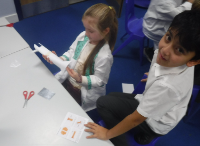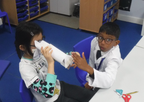 The day kicked off with a challenge to design and build periscopes. The children demonstrated their understanding of light and reflection, using mirrors to direct light in their creations. With cardboard tubes, mirrors, and plenty of perseverance, they crafted working periscopes that allowed them to see around corners and over obstacles. It was fantastic to see their problem-solving skills in action as they adjusted angles and tweaked their designs to get a clear view. If you would like to have a go at making one with your child at home, please see the attached template, below.