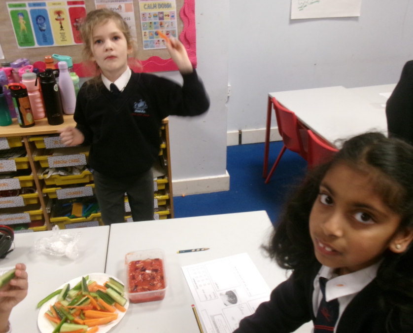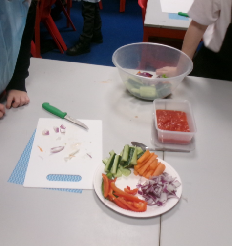 The children planned, designed, made and evaluated a healthy snack: a delicious salsa dip with crudités. They learnt and practised key food preparation skills, including chopping, cutting and slicing, while also thinking carefully about hygiene and safety in the kitchen. Everyone worked brilliantly and showed great enthusiasm, teamwork and independence throughout the day. Most importantly, the children thoroughly enjoyed tasting their finished creations!