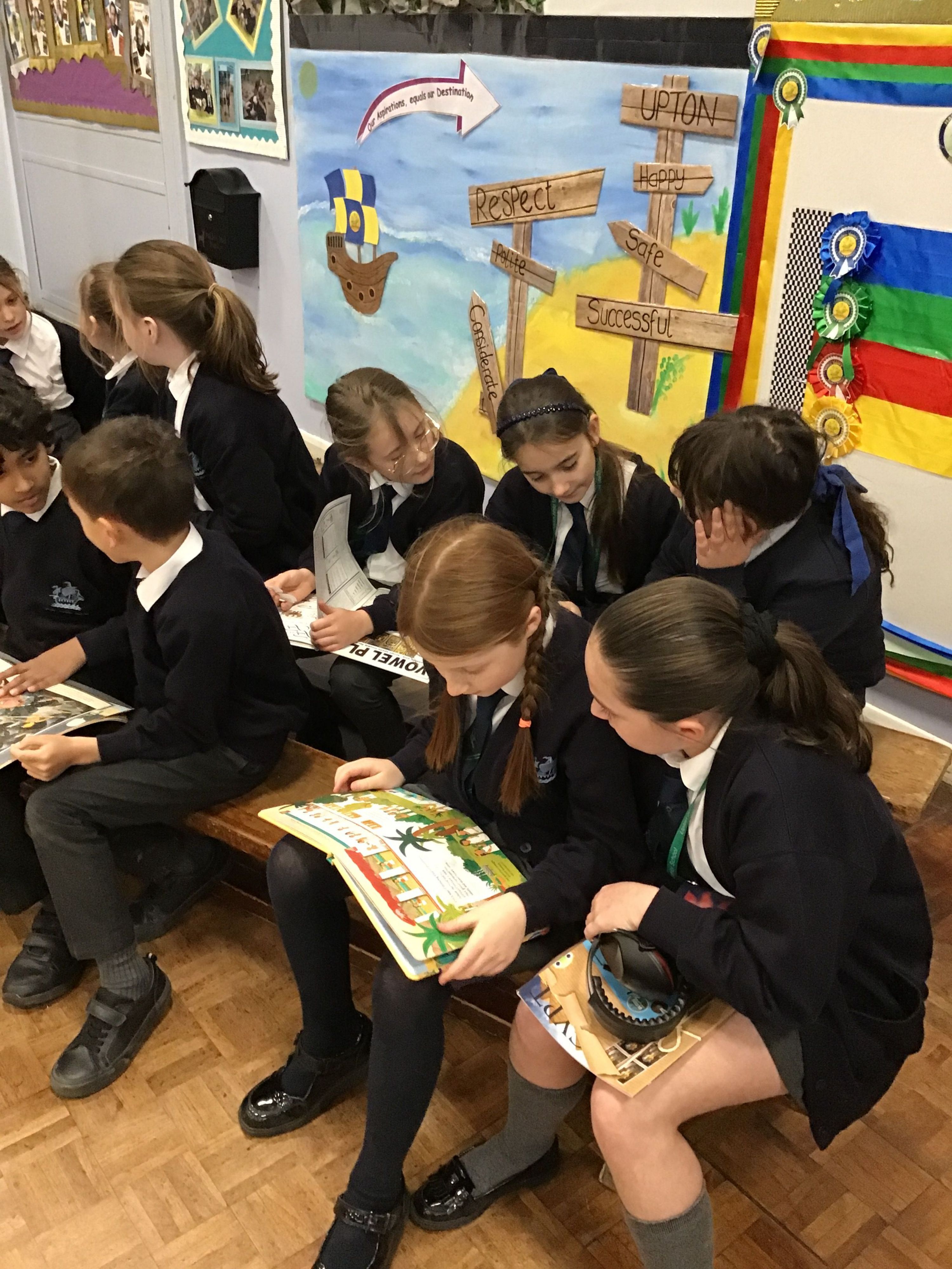 During this week’s Book Banter session, we created a Reading River in the hall and the children enjoyed sharing stories with each other across classes in the year group.