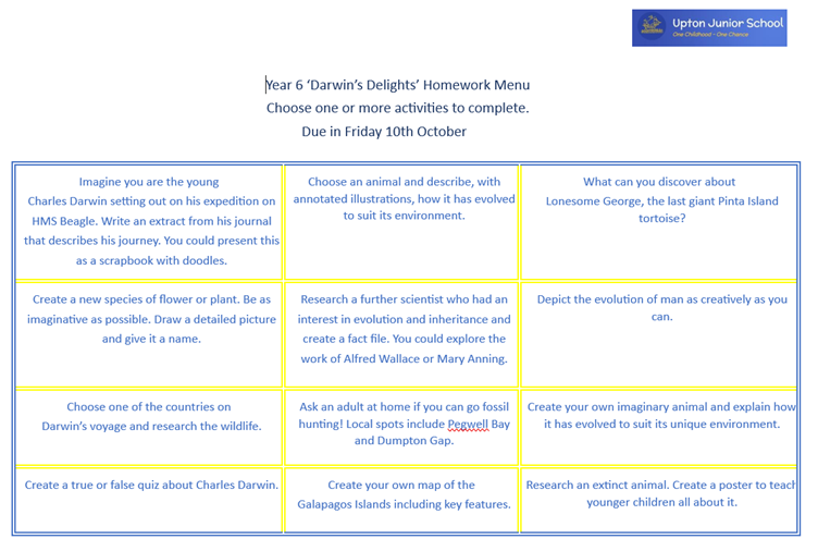 - Please see the homework menu below for our thematic homework. This can be completed in the homework book provided if you wish.