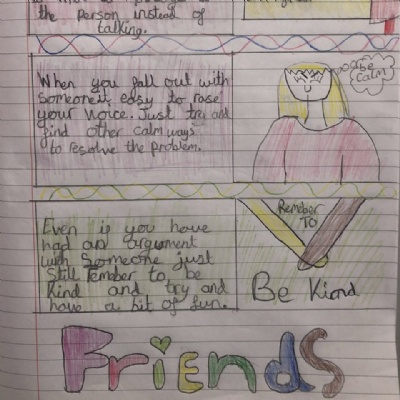 This week in 5R we have been focussing a lot on friendship, including creating some friendship art, devising a recipe for a perfect friend and creating a poster for resolving conflict (Lily's poster above shows some of the ideas discussed as a class). 5R really know what it is to be a friend...Read Full Story - 11/09/20