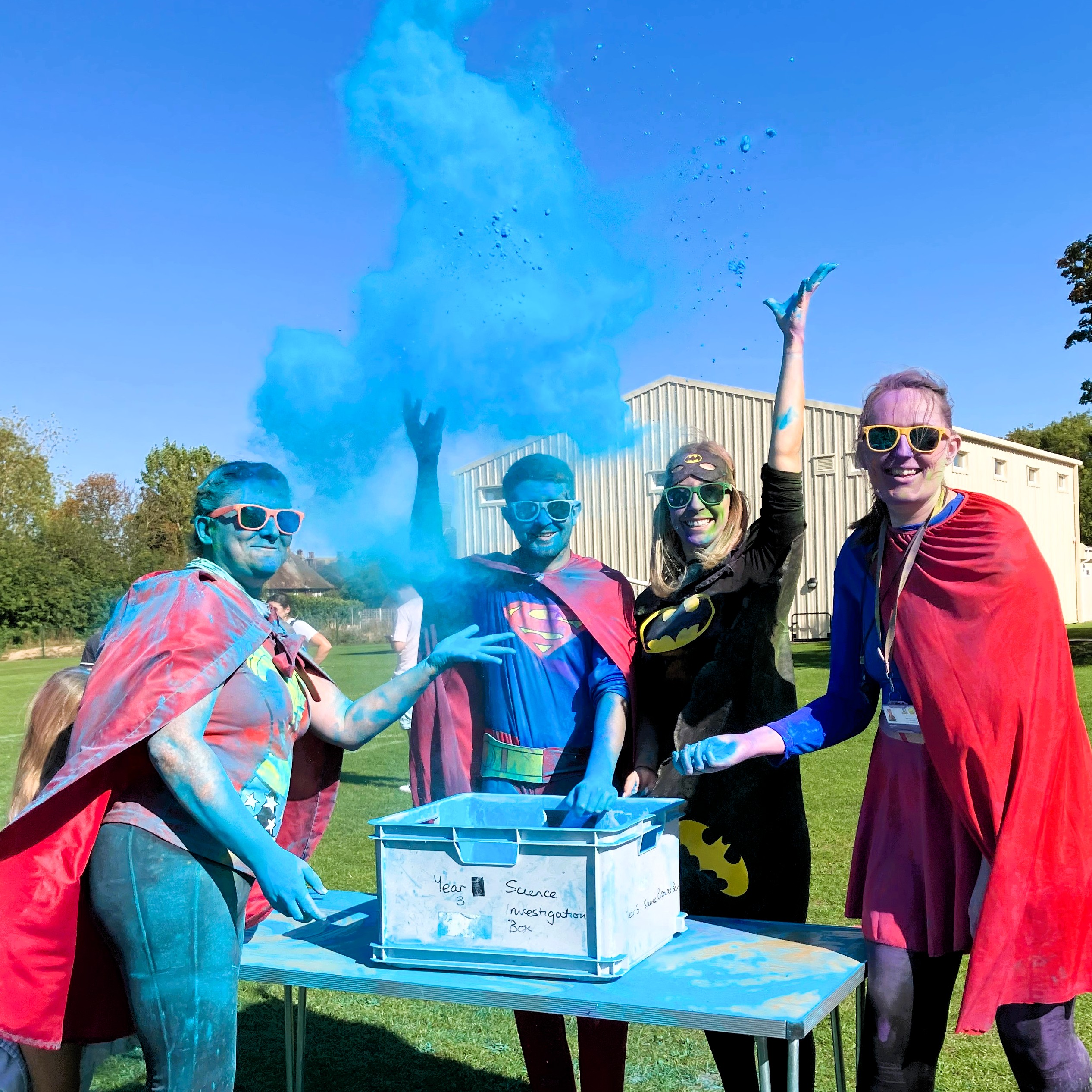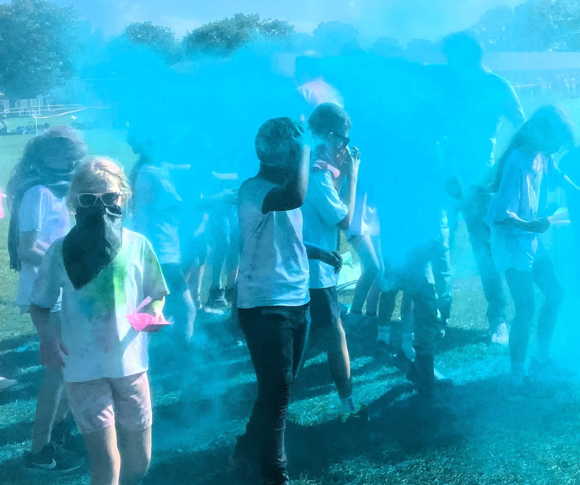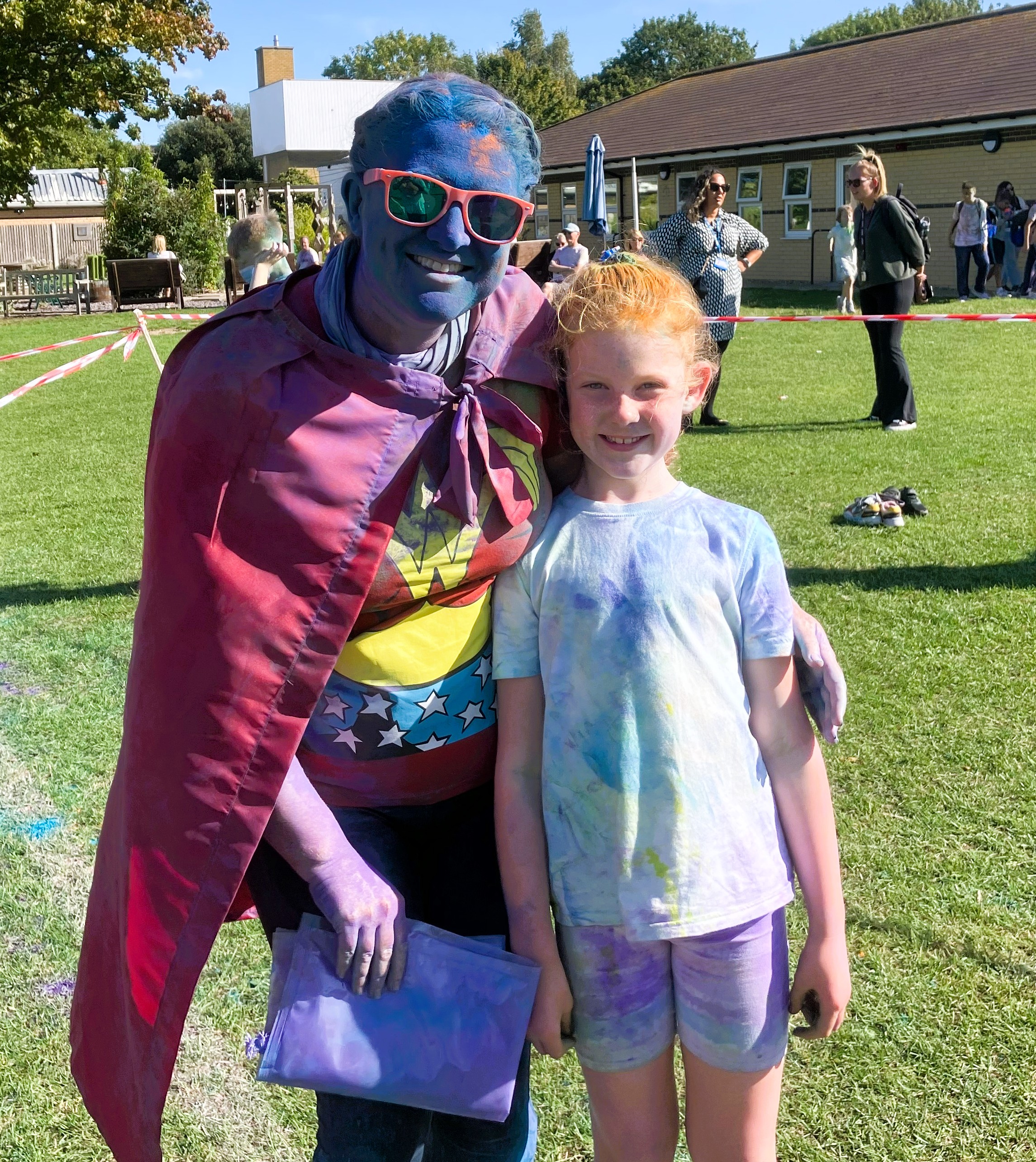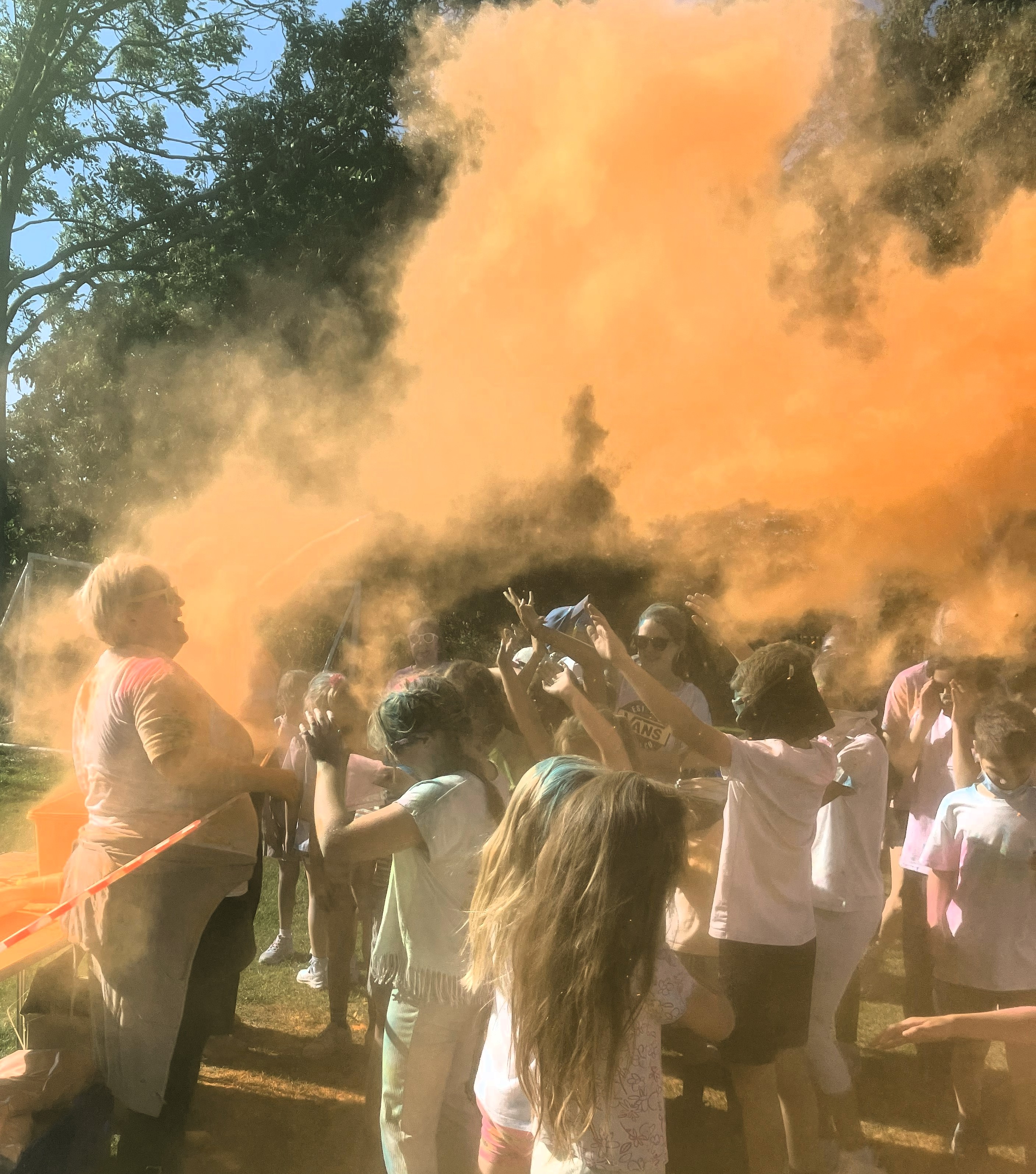 As they walked, jogged, ran and laughed their way round the crazy course the air was dense with colour as special ‘stations’ manned by teachers saw more shimmering showers doused on to the multi-coloured participants.