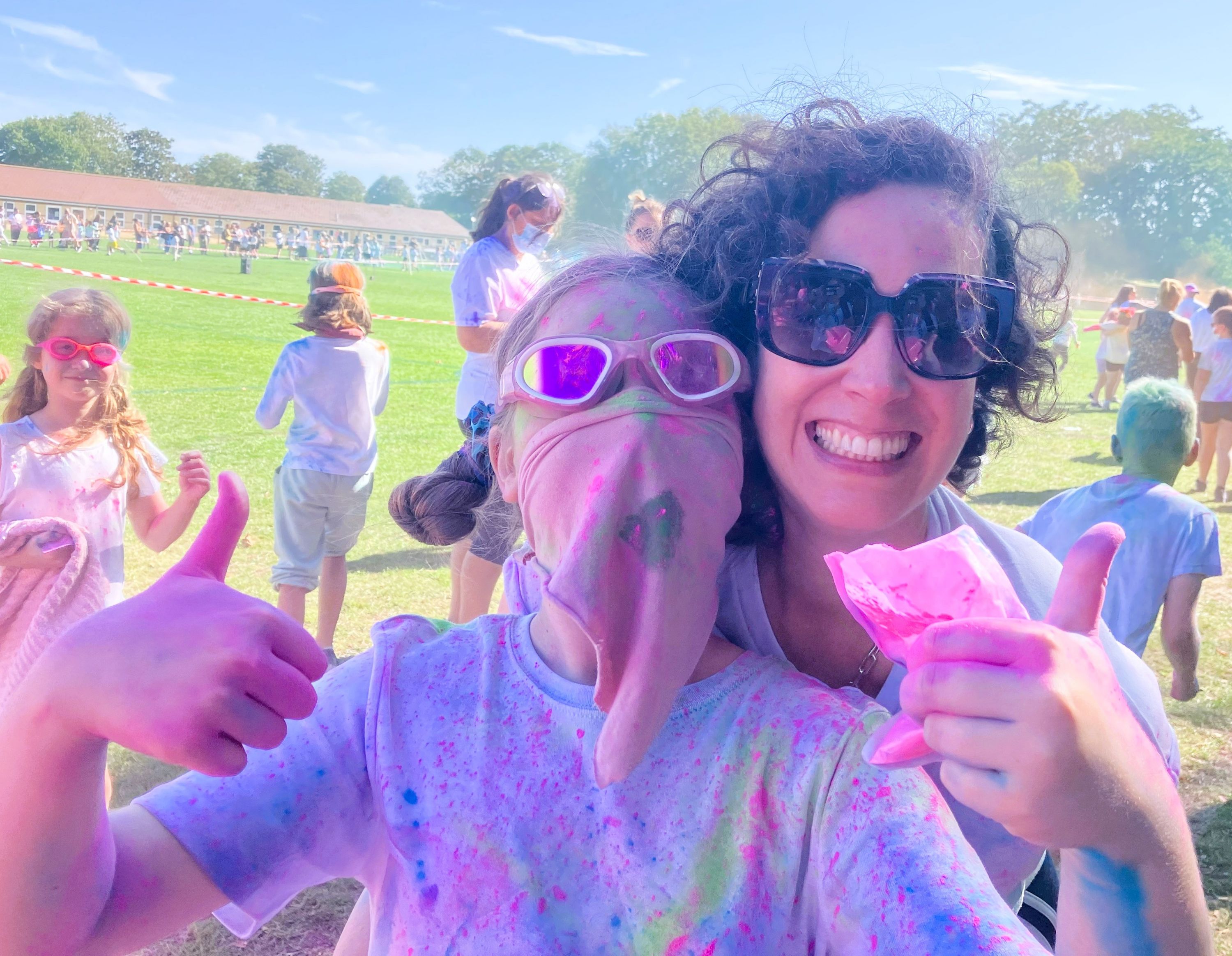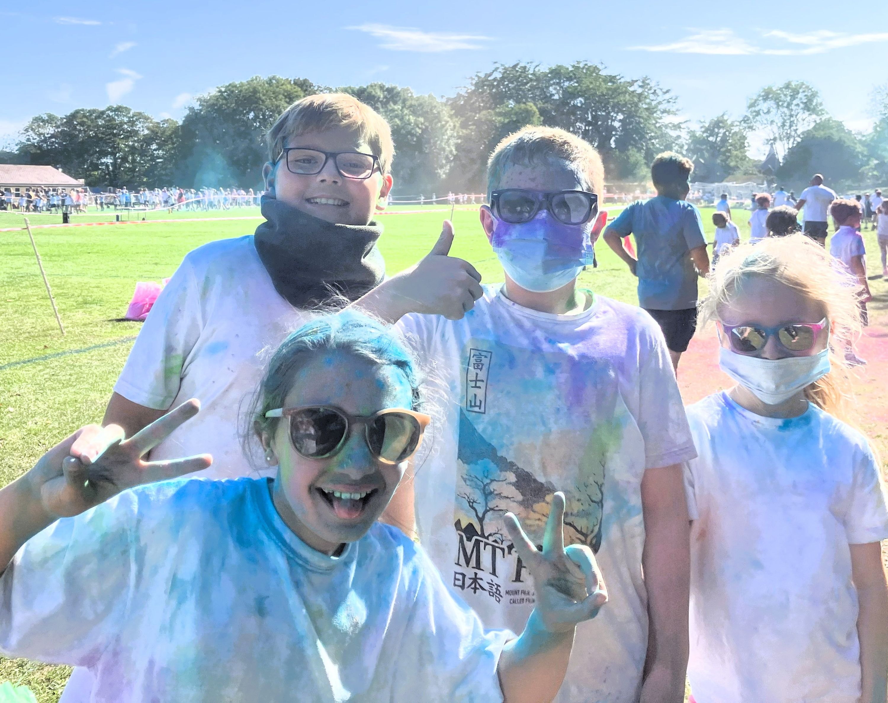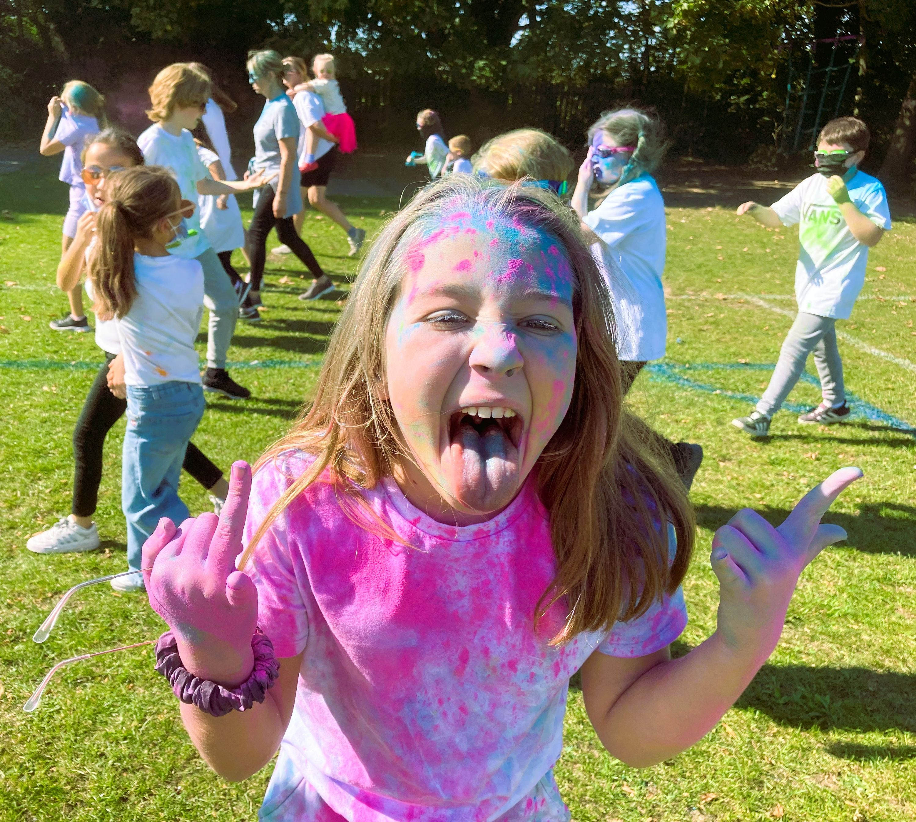The fun event saw hundreds of pupils lap the playing fields on a circuit while happily being showered with a rainbow of vivid coloured powders.