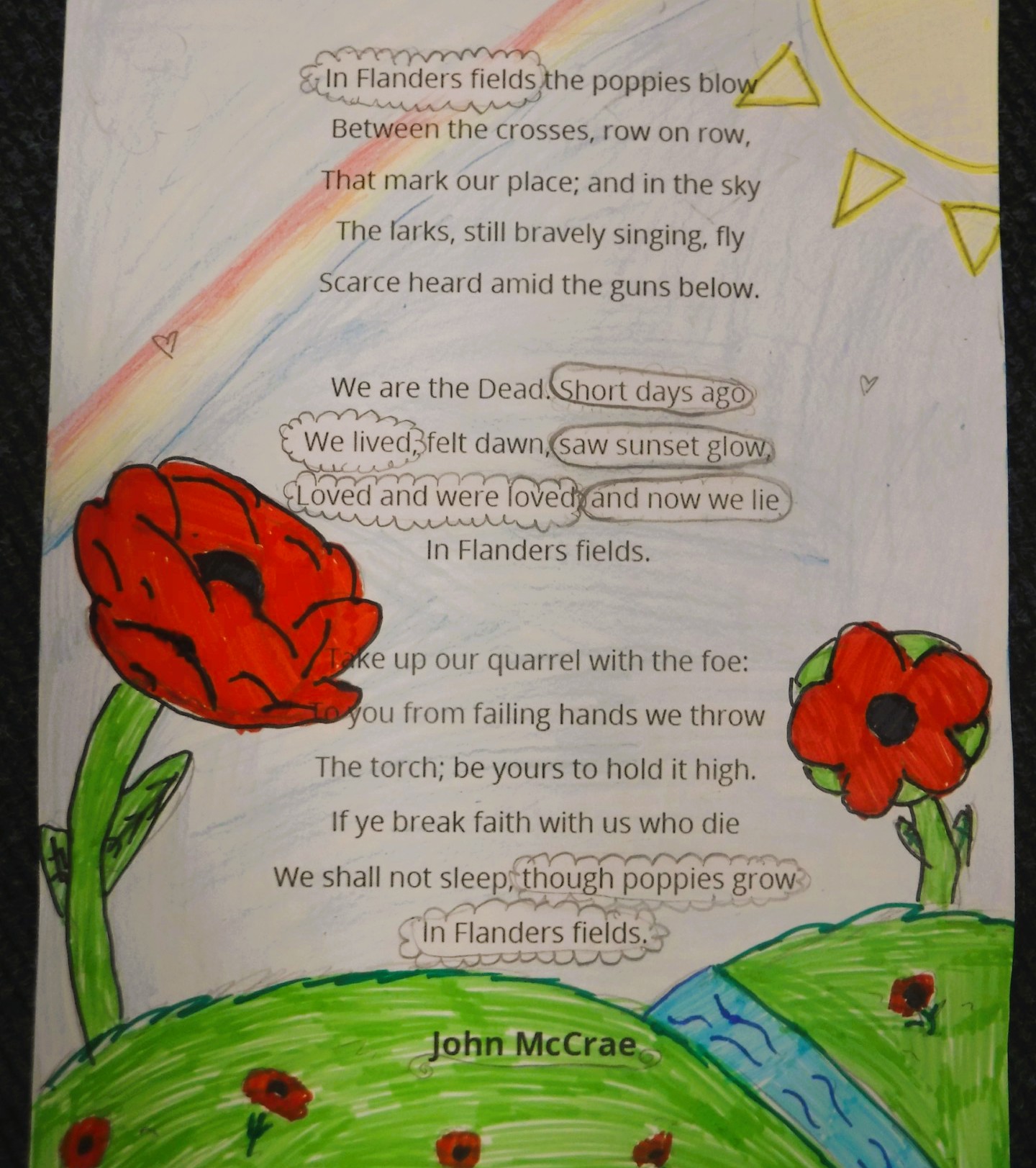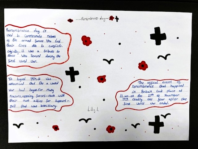 The Remembrance theme filtered through the whole day’s lessons across the age ranges with children completing a variety of creative writing tasks.